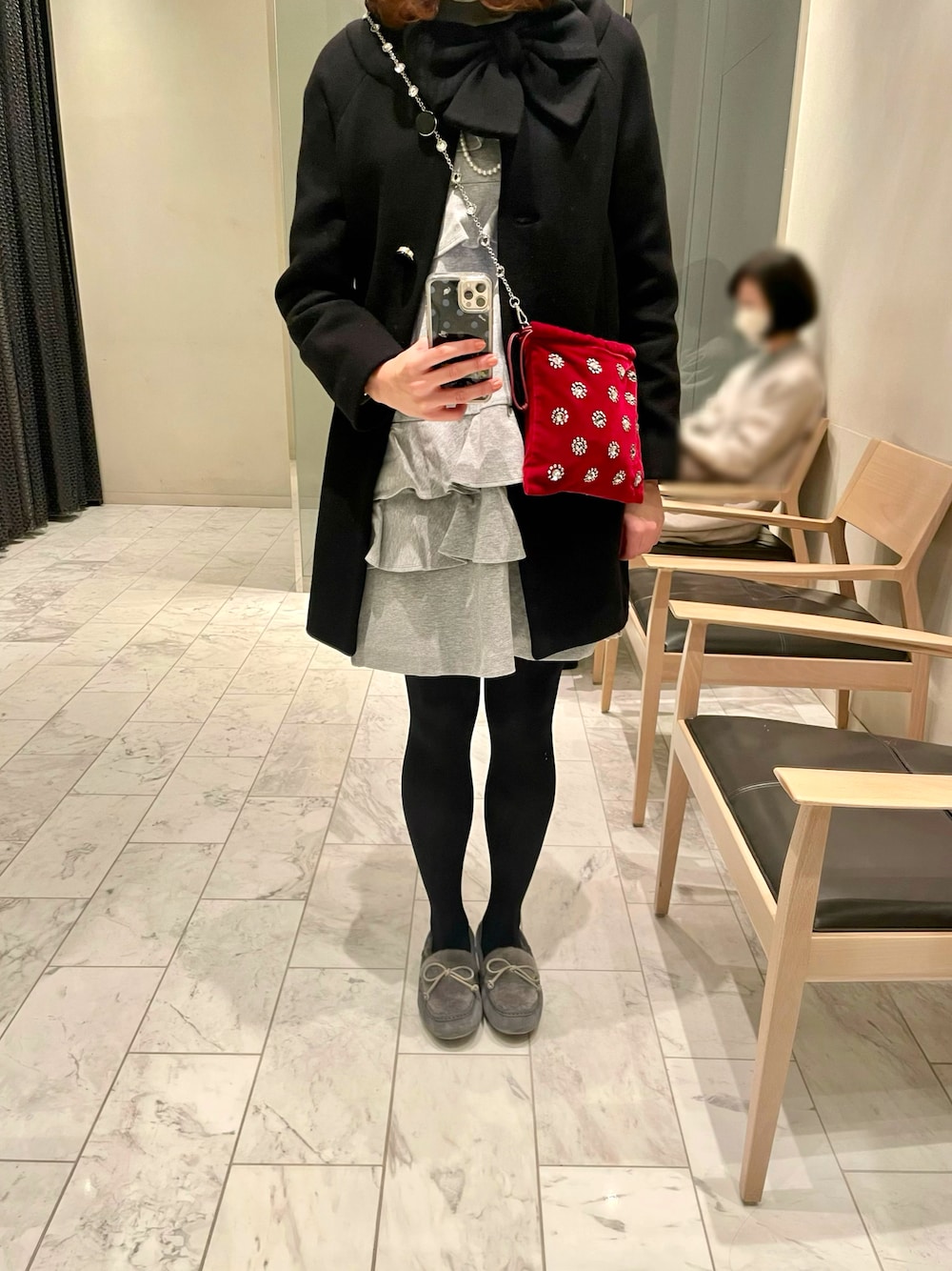 休日のお出掛けコーディネート💕 Chestyのスウェットワンピースに、kate spadeのリボンコートを羽織りました🎀🤍 甘めなので、UGGのモカシンを合わせてカジュアルダウンしてみました🙌🏻✨