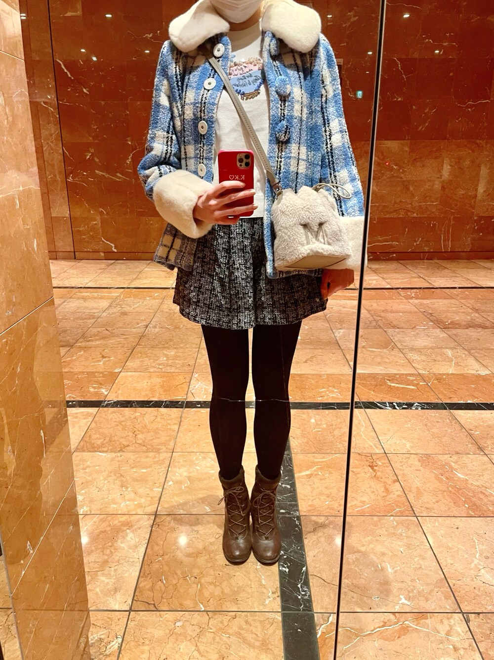 休日のお出掛けコーディネート🤎 Chestyのニットに、Aveniretoileのツイードショートパンツを合わせました🧸💕 寒かったのでモコモココーデ🦙🤍