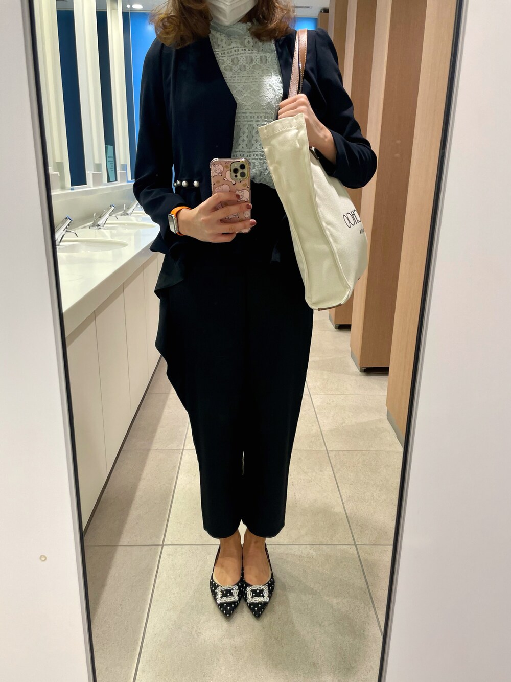 ある日の通勤コーディネート♡ JILLSTUARTのミントグリーンのブラウスに、CELFORDのパンツを合わせました🐣💛 いつも白のジャケットが多いけど、珍しく暗めのジャケットにして気分を変えてみました😎👍🏻✨