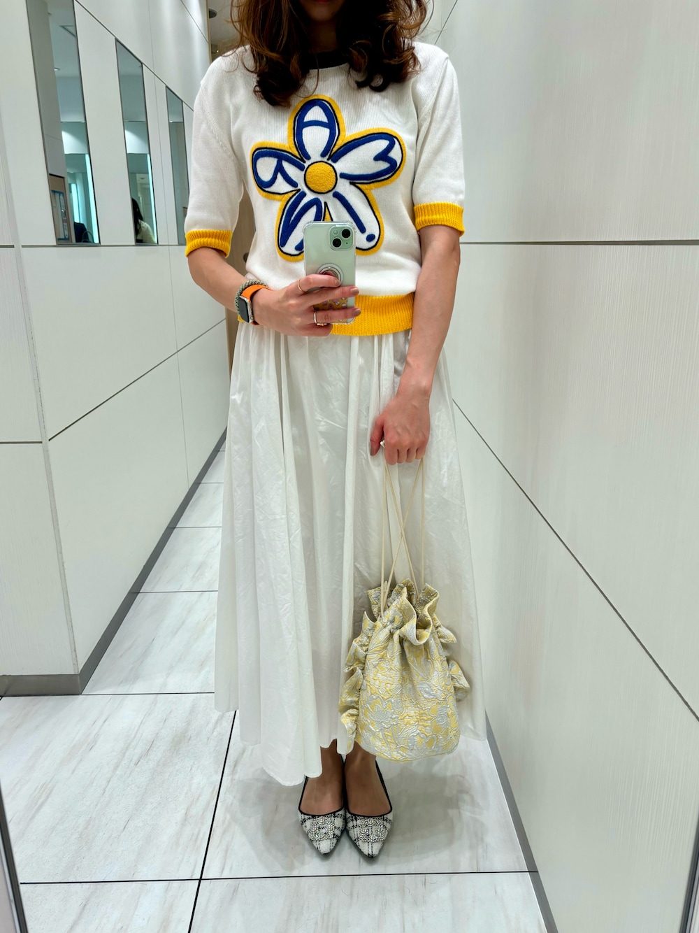 休日のお出掛けコーディネート♥️ MARNIの5分丈ニットに、Mila Owenのスカートを合わせました😘💕 衣替えしてなくて全然着る洋服がない🥹😇
