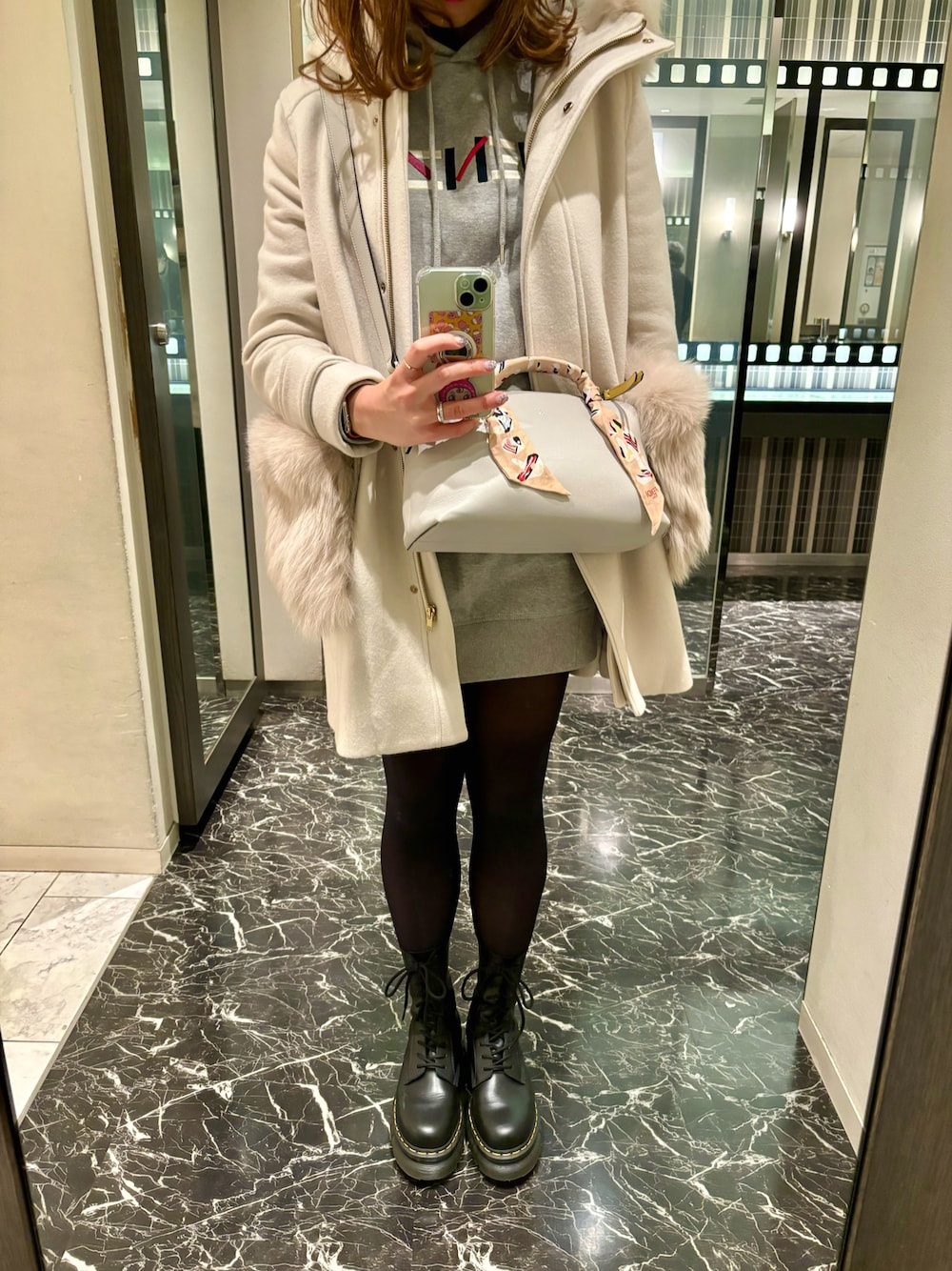 休日のお出掛けコーディネート♥️ KENZOのスウェットワンピースを着ました🥳💕 韓国料理を食べに出掛けたので、臭いが付いても大丈夫な様に、すぐ洗える洋服に😎👍🏻