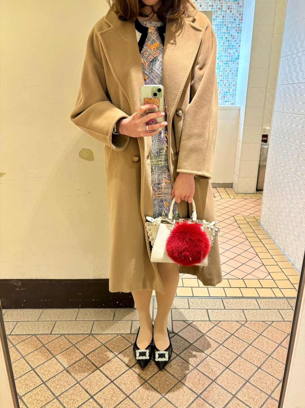 休日のお出掛けコーディネート❤️🩹 Reneのツイードワンピースに、CABaNのバイカラーカーディガンを羽織りました😚💕 そろそろモコモコが使えなくなるから今のうちに‥🐑⭐️
