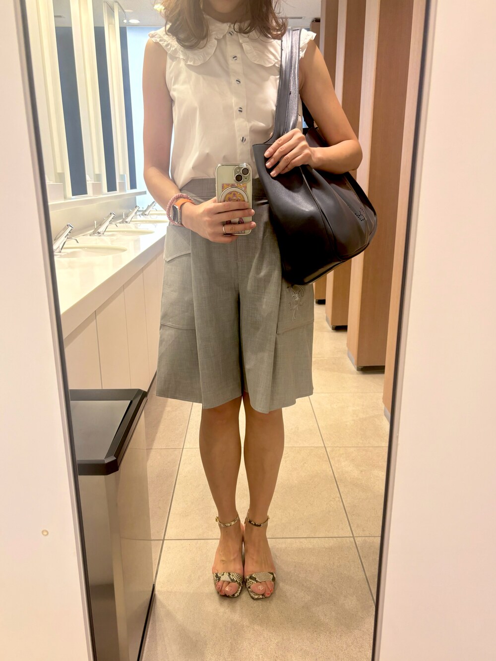 Reneのビッグカラーブラウスに、ハーフパンツを合わせました🐰💕 9月半頃まではまだ夏服着ても良いだろうという甘え‥😂🌻