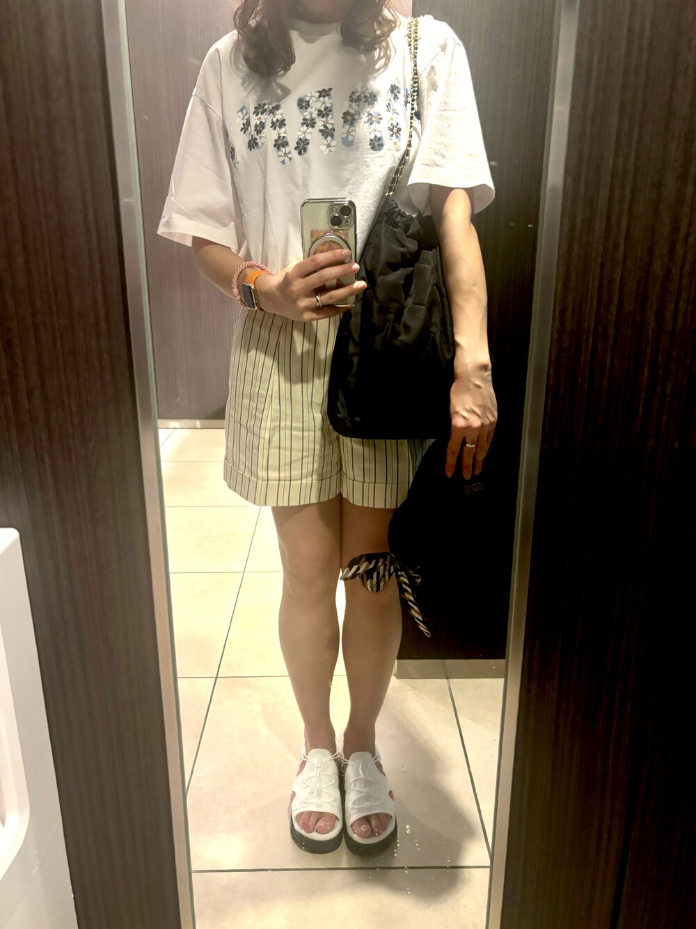MARNIのTシャツに、LAUREN RALPH LAURENのショートパンツを合わせました😆💕 アクティブに動けるショートパンツが好き☺️🫶🏻👍🏻