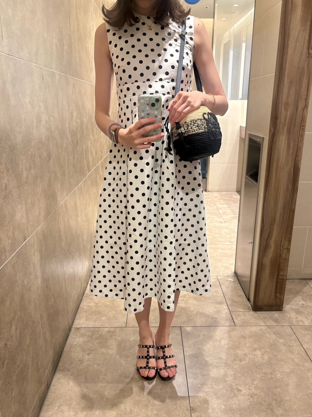 akikiのドットワンピースを着ました👼🏻💓 毎年着てるお気に入りのワンピース🤍🖤