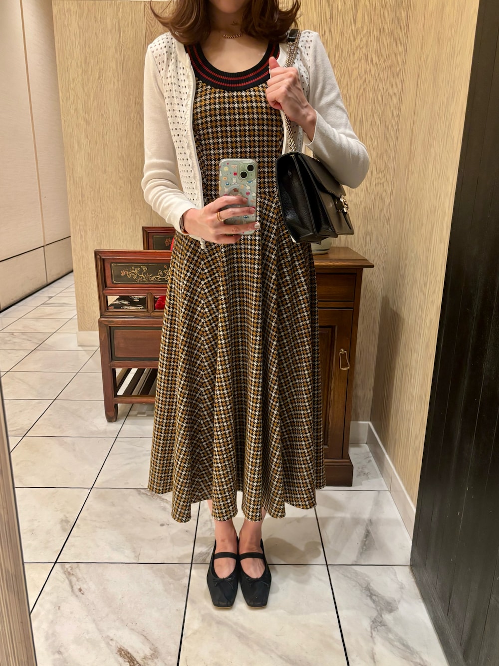 MARNIのワンピースに、Reneのカーディガンを合わせました😆💕 バッグとバレエシューズを黒で合わせてみました🤔🩰🖤