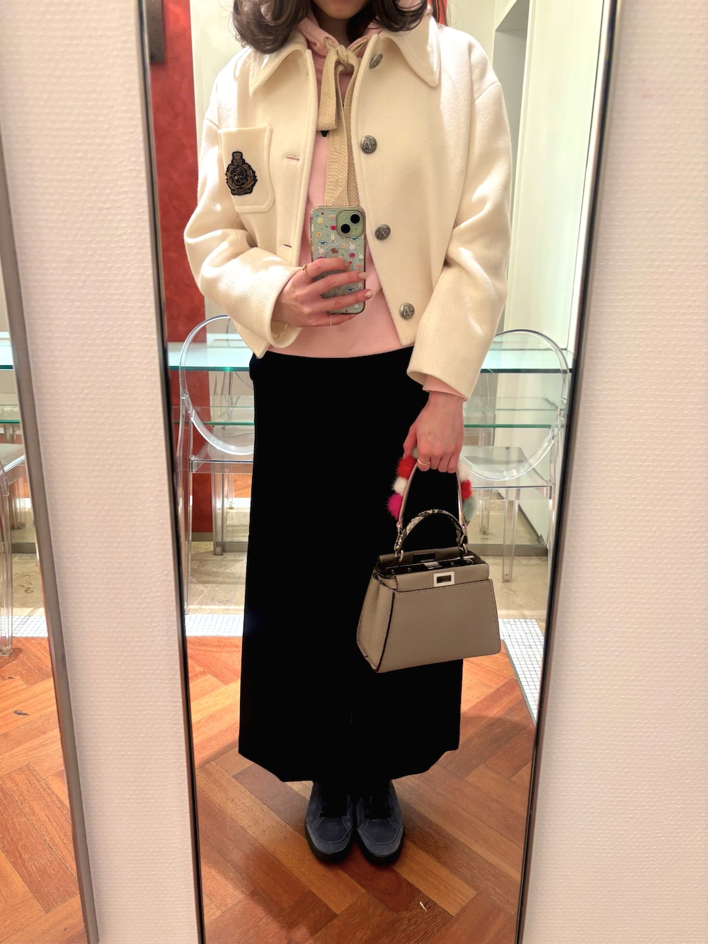LOEWEのフーディーにAURALEEのスカートを合わせました🤗♥️ ポカポカでとても過ごし易い一日だった😚💕