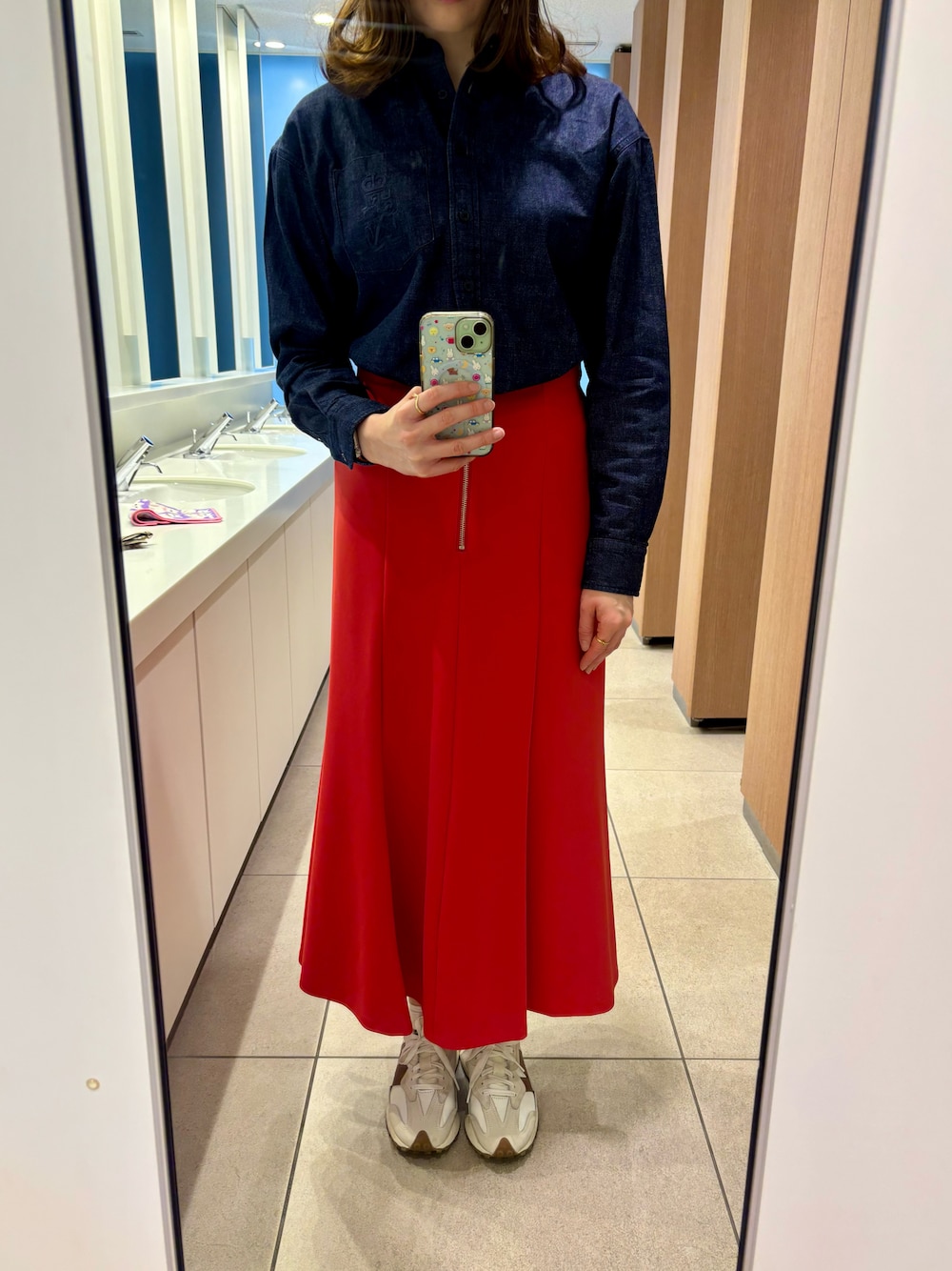 LAUREN RALPH LAURENのデニムシャツに、Agaのマーメイドスカートを合わせました🐨🧡 デニムシャツをインするにはサイズが大きかったかなぁ🤔