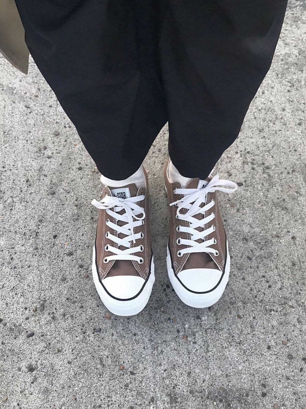 ブラウンコンバース初下ろし〜写ってないけどバッグはダントンのサコッシュで、アウターは古着のロングトレンチ🧥