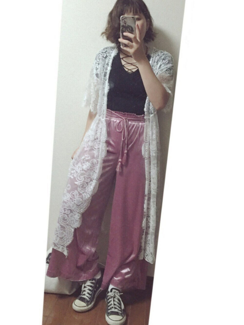 Black♣️ Pink🌸 White🌨 NICE CLAUPのワイドパンツは ベロア生地で可愛い😋😋😋