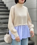 ニットとシャツがレイヤードされているデザイン性の高いアイテム。 デニムと合わせて大人カジュアルなコーデ。