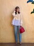 krn563のデニムパンツ「【YANUK/ヤヌーク】LEA サックスカラーパンツ」を使ったコーディネート