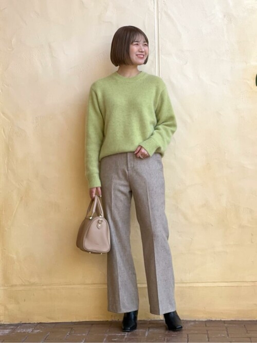 【トップス】 YAK100%でふわふわで暖かいニットです。 絶妙な開きのクルーネックがベーシックで、どなたでも使いやすく、どんなコーデにも合わせやすいデザインです。 ピスタチオカラーが一推しのカラーです◎ 【パンツ】着用サイズ:38 フレアシルエットで美脚見えのパンツです。 綺麗めからカジュアルまでオンオフ兼用で使って頂けます。 脚にフィットし過ぎないデザインなので、フレアシルエットだと太もものラインが気になるという方にもオススメです!