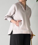 フードニット×スカート カジュアルになりすぎず、きれいめにも合わせやすいフードニットです。 サイドのジップでお好みでスリットを調節できます◎
