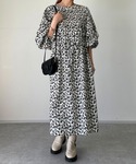 krn563のワンピース「単色花柄プリーツロングワンピース」を使ったコーディネート