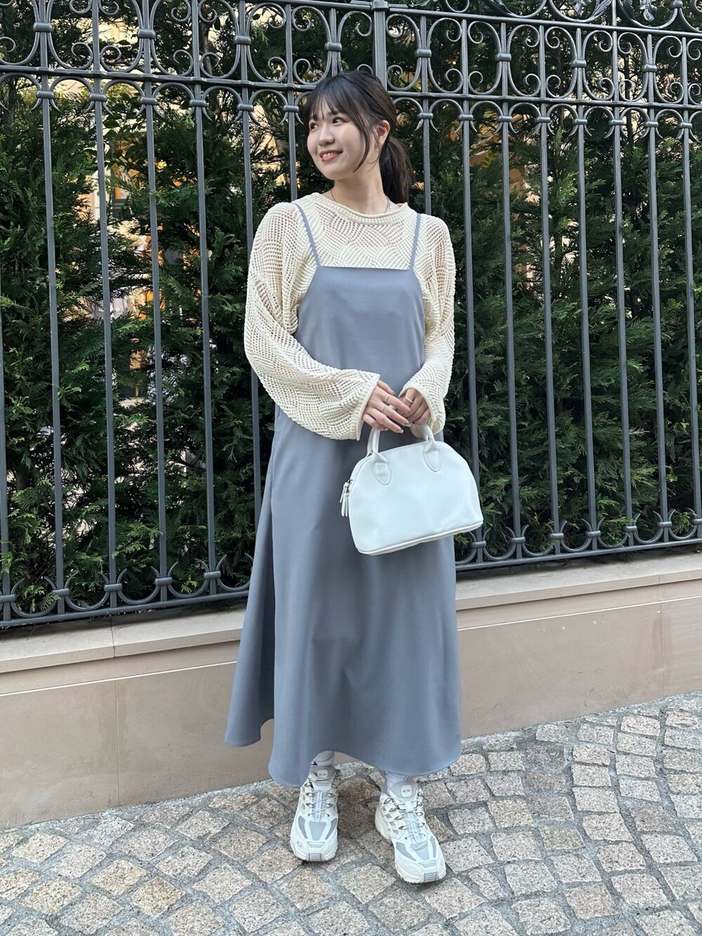 【トップス】ざっくりとしたシルエットがかわいいニットトップス。 たぽっと感のあるお袖がポイント! 【ワンピース】前後2WAYで着れるキャミワンピース。 162cmでMサイズ着用しております。