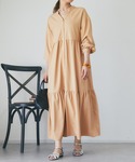 【ワンピース】ゆったりシルエットのワンピース。 ゴールドボタンがアクセントに◎