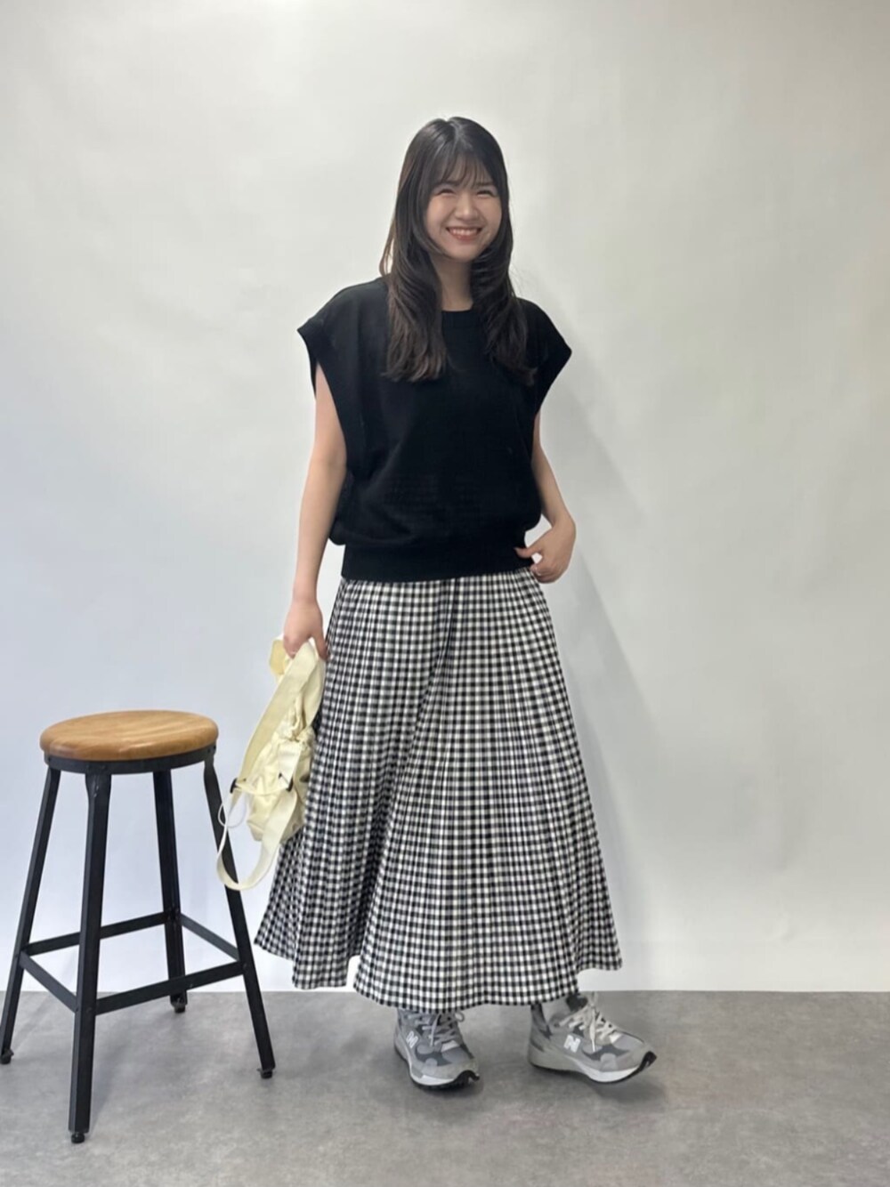 ギンガムチェックが大人かわいいスカート。 ウエストゴムで楽に履けます◎ モノトーンに合わせたコーデです。