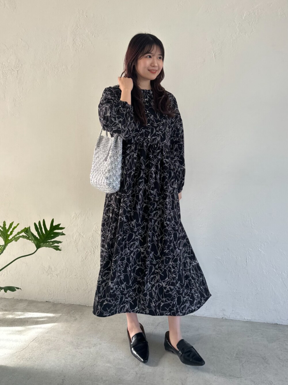 さらりと肌触りの良いワンピース。 ウエストには少し高めの位置にギャザーが入っていて、スタイルアップ効果が期待できます◎