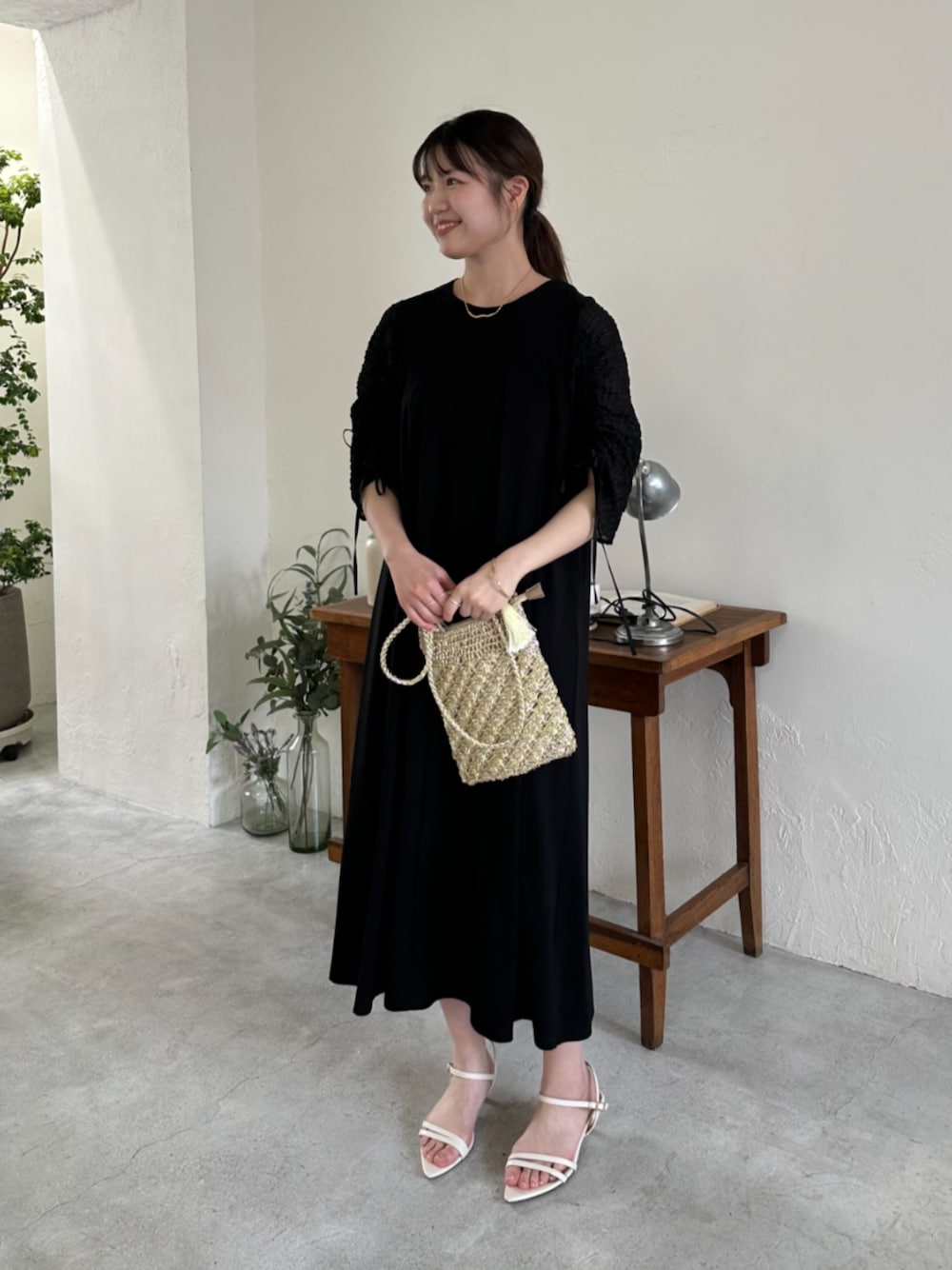 1枚でさらっと着れるワンピース。 袖のくしゅくしゅした感がポイント!