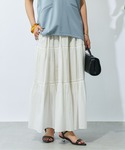 ロゴT×スカート 甘めのスカートをカジュアルに合わせたコーデ。 赤を差し色に◎