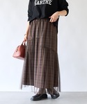 【トップス】 さらっとした生地感のブラウス。 ゆったりとしたシルエットで身体のラインを拾いにくいです◎ 【ボトム】 チェック柄×チュールのスカート。 コーデの主役になります!