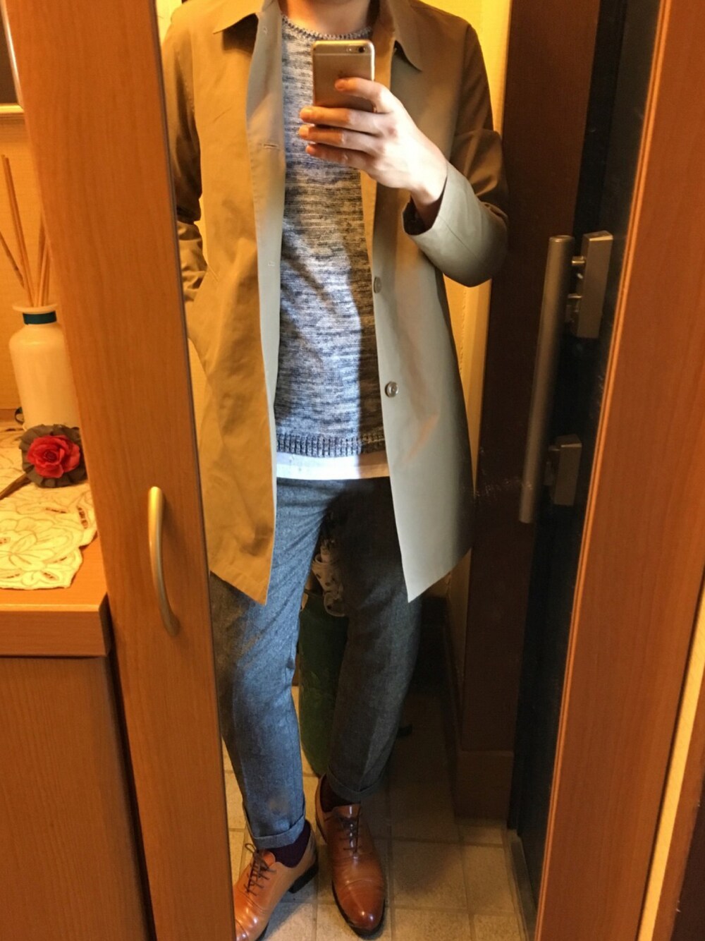 今日はそこそこ暖かかったのでこれでもいけるけど、今後、今年はもう無理だな😭 着用のステンカラーコートは色味が春っぽいから来年また着ることとしよう👯