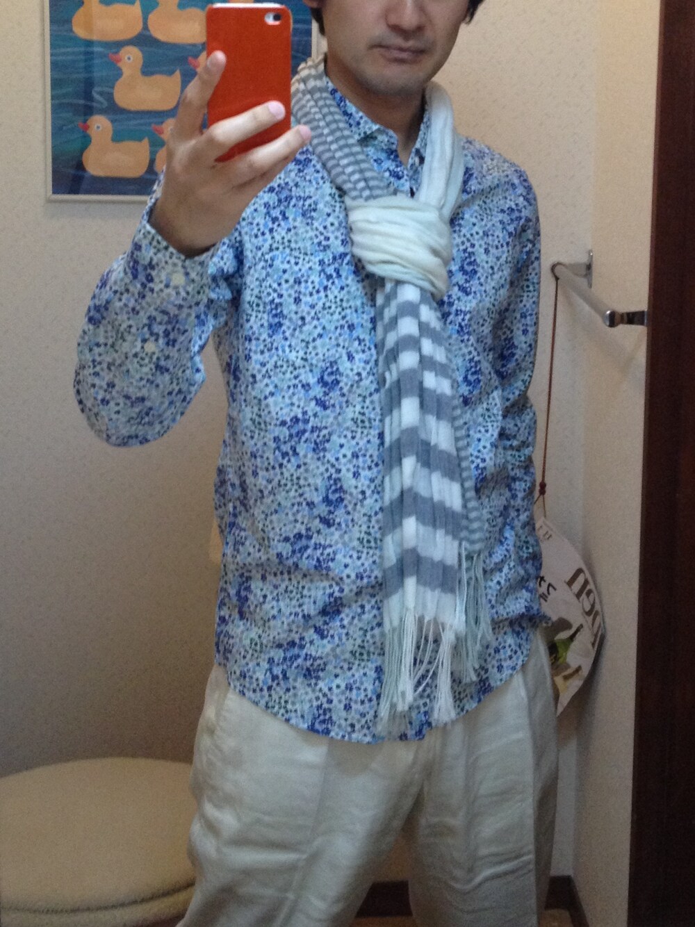 花柄シャツとストール