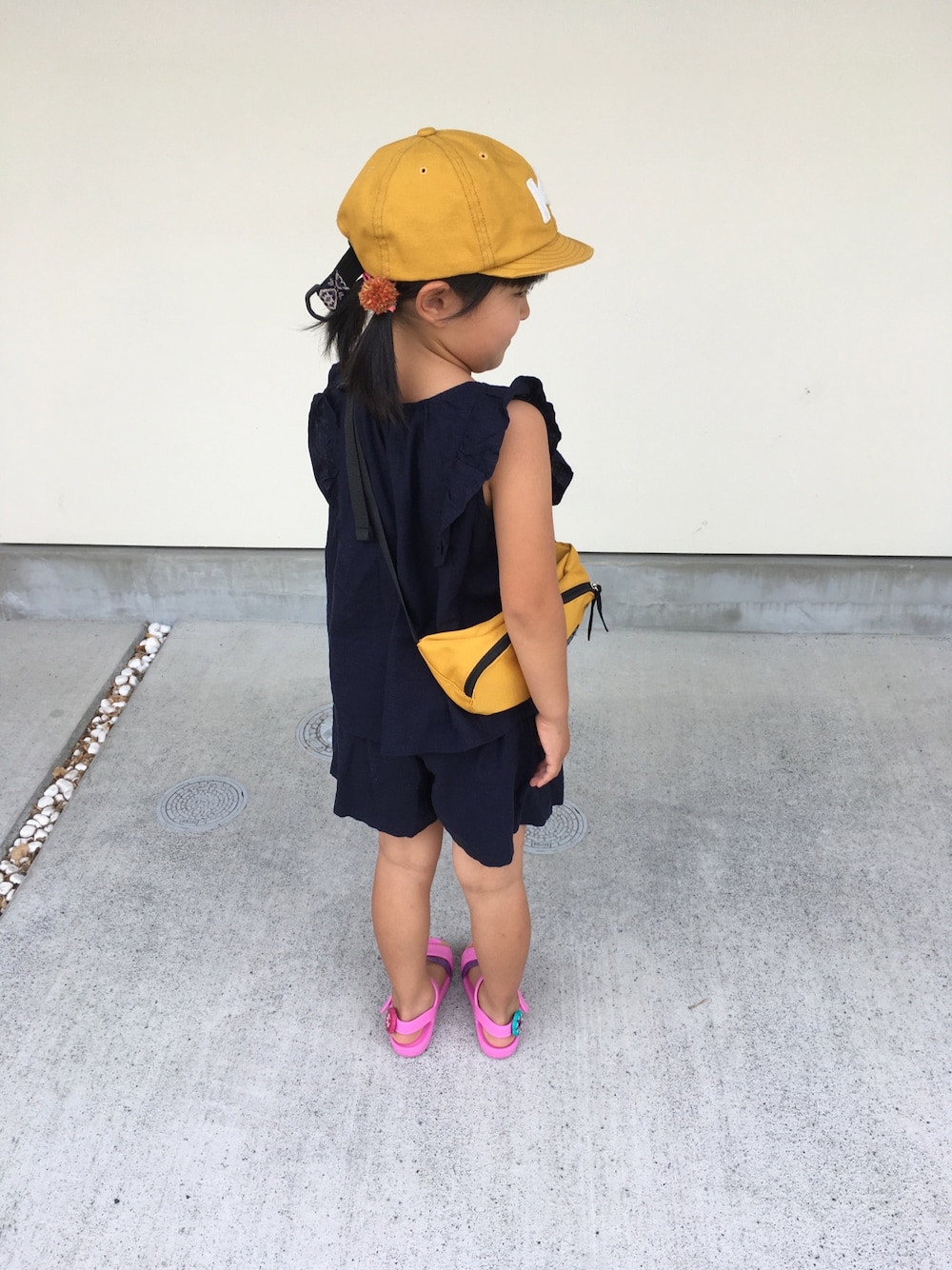 GLOBAL WORKのセットアップ自分で選びました。サンダルはやっぱりピンク❤️