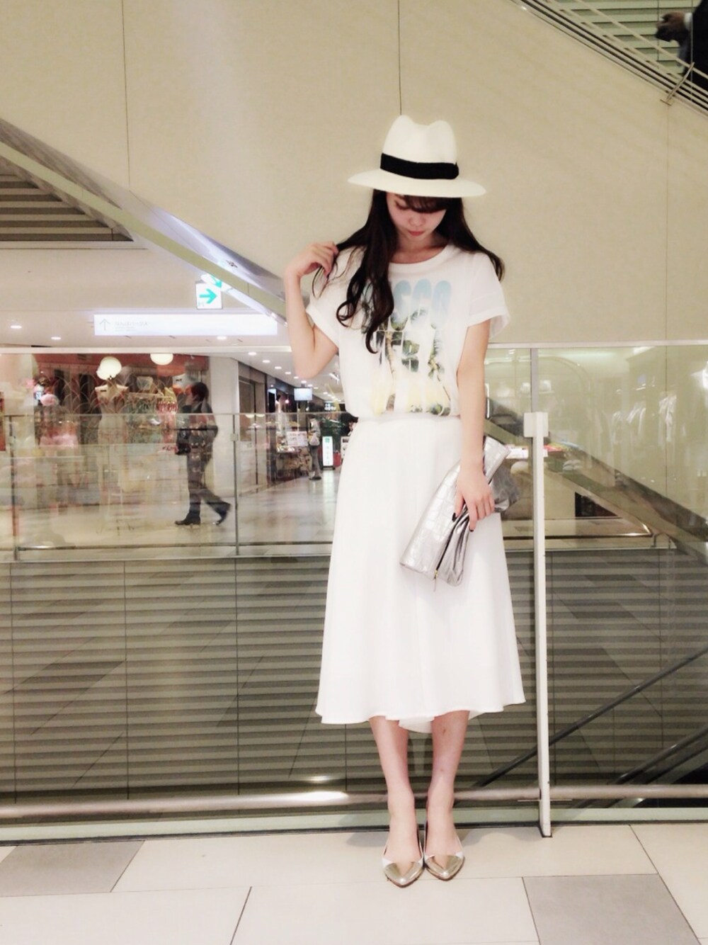 Tシャツを大人っぽくコーディネートしました❤︎ 靴まで徹底的にホワイト!がポイントです😘