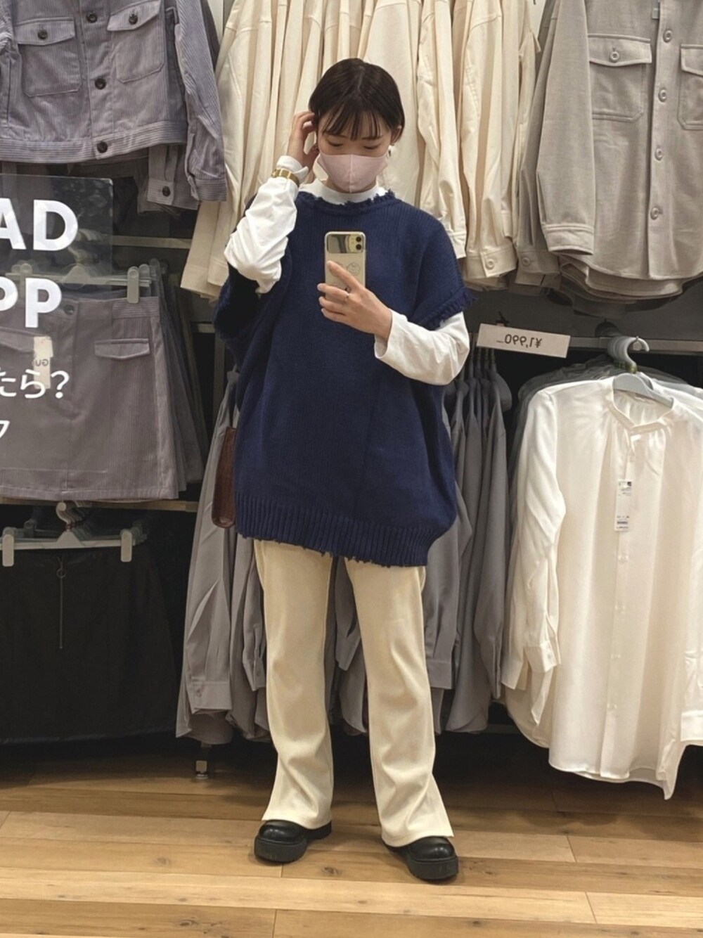 . . GUで秋服買い〜🌿 . このブルーのニットの形がお気に入り!! シルエットがすごく可愛く見えるし、体型カバーもできる✨ . .