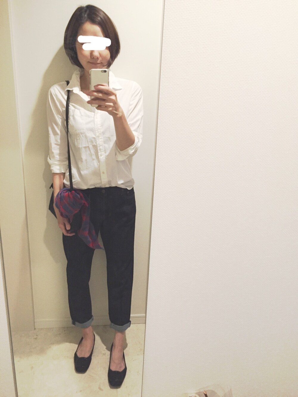 白シャツ×デニムの形で気分を変えたコーデ。 デニムをボーイフレンドデニムに。スキニーも好きだけど白シャツと合わせるこの形も好きです☻ 去年買ったUNIQLOイネスのチェックストールが夏らしくてポイントになりました。