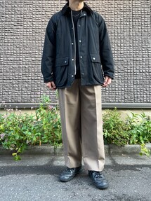 ■Outer Barbour - 【UA別注】OVERSIZE SOLID BEDALE ■Tops BEAUTY & YOUTH - クリスプ アゼ フォルム クルーネック ニット ‐ウォッシャブル‐ ■Bottoms Thingless - ワイド2プリーツパンツ ■Shoes Reebok - CLUB C 85 PREMIUM