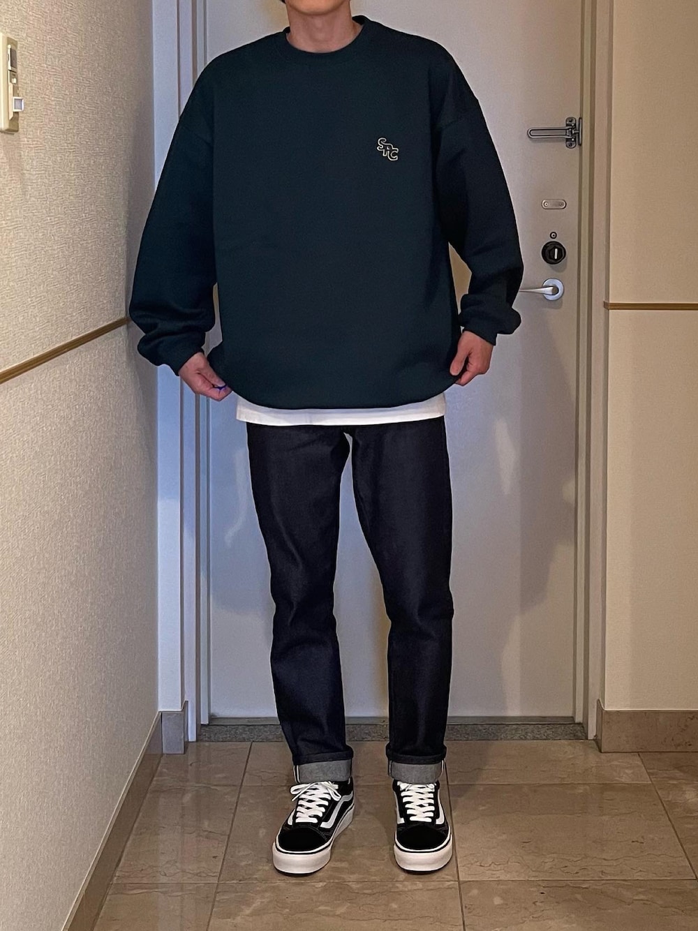 clo_thes08のスウェット「【SPOC STORE】裏起毛 ワンポイント刺繍/カレッジロゴ オーバーサイズスウェット」を使ったコーディネート