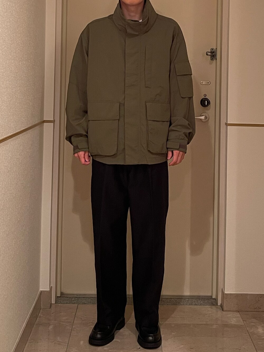 GUのスタンドカラーオーバーサイズブルゾンを着用しています。168cmでLサイズです。