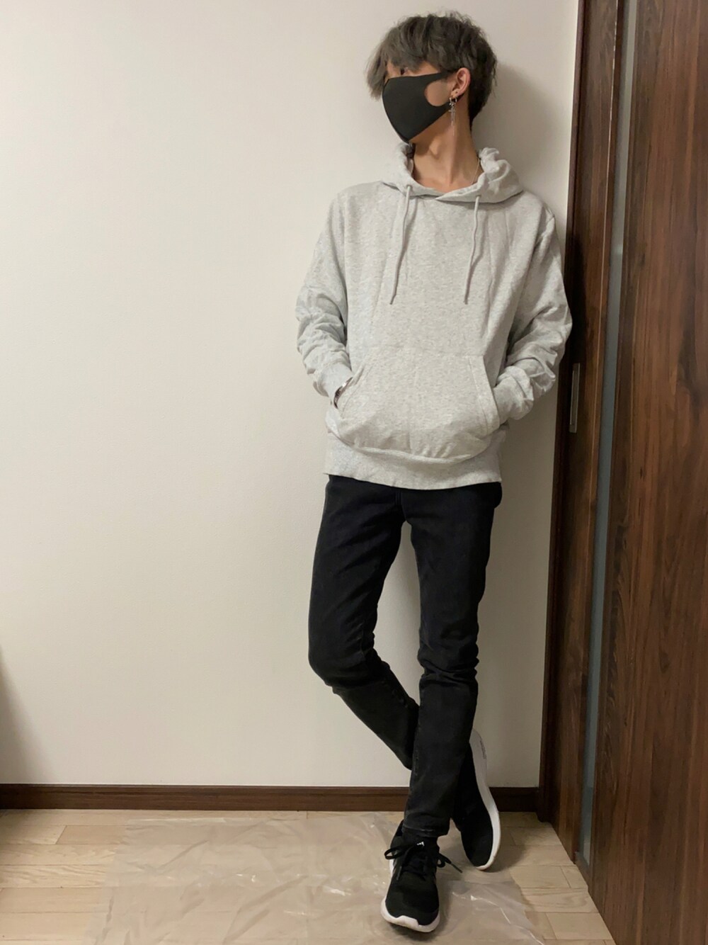 見ていただきありがとうございます! 白パーカー黒スキニーのモノトーンコーデです!