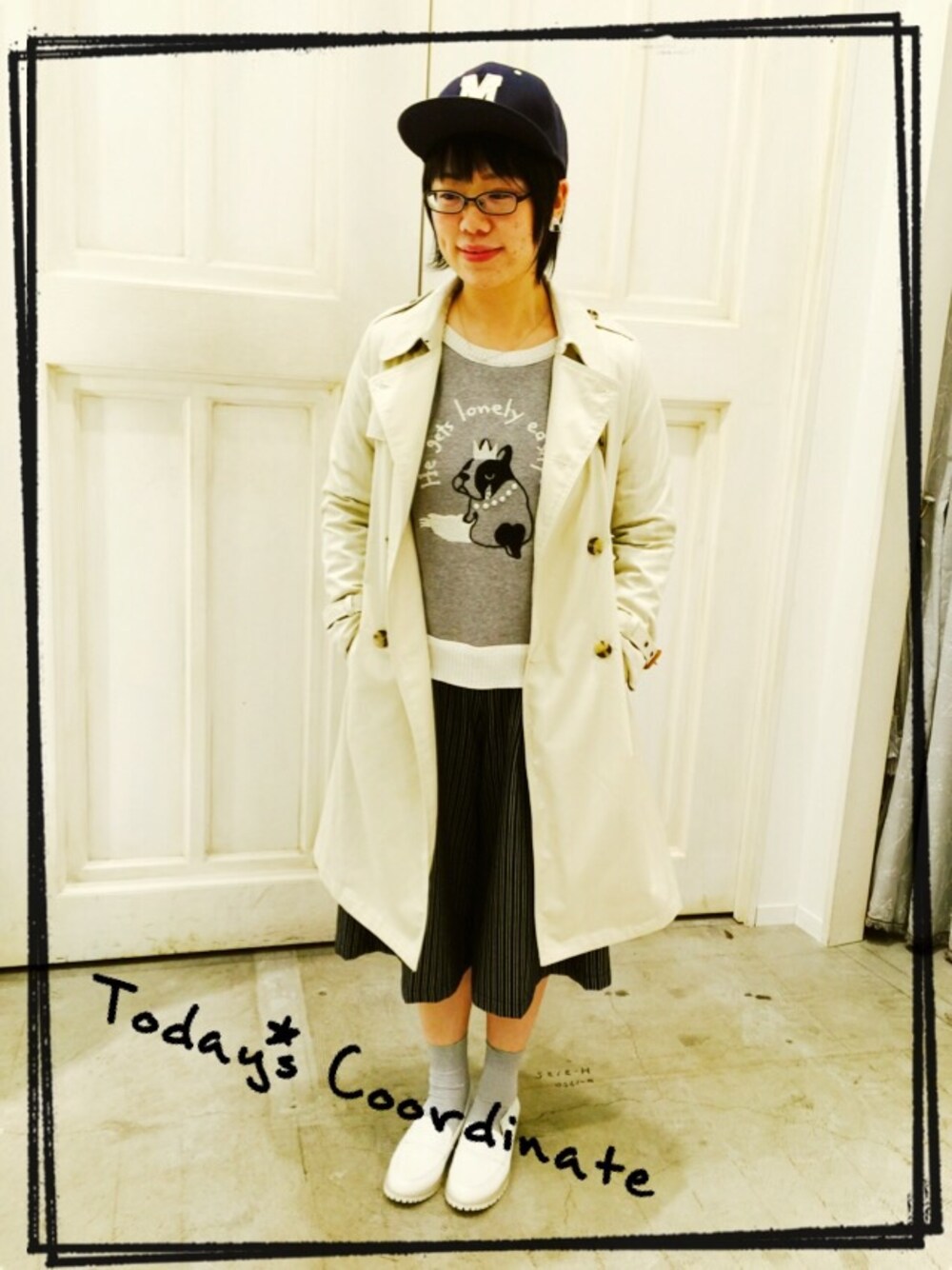 春らしいトレンチコートでスポーティ過ぎないコーディネートにしました^_^