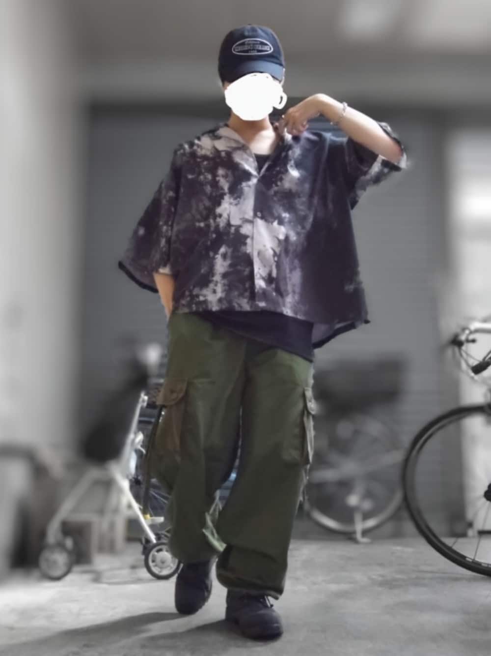 たまごのカーゴパンツ「《JaVaジャバ コラボ》ゆるっとラフスタイル。ミリタリーパラシュートカーゴパンツ」を使ったコーディネート