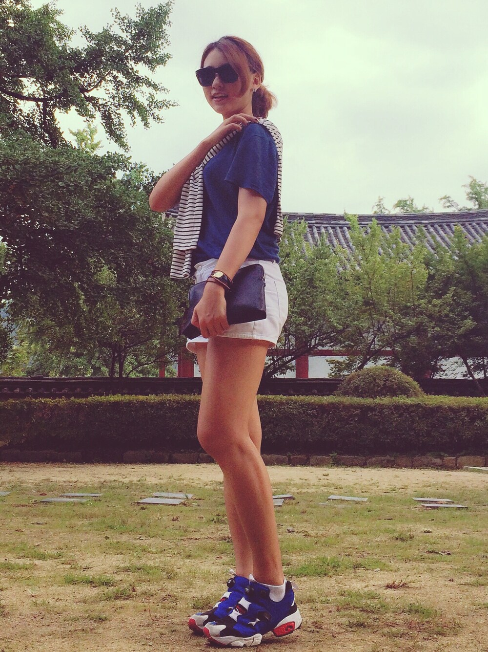 Loos fit top Stripe tee White shot pants reebok pump pury