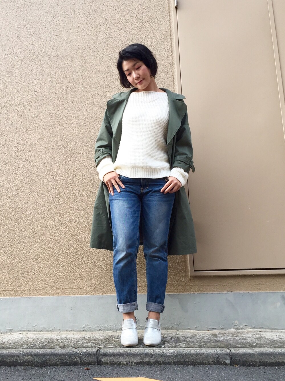 今日はニットフェアーなので、白いボートネックのニットで。 miimuのトレンチはかっちりしてなくて、とても羽織りやすい◎ カーキGETしておいて良かった〜 スペーシー?なmiimuのブーティもお気に入り。