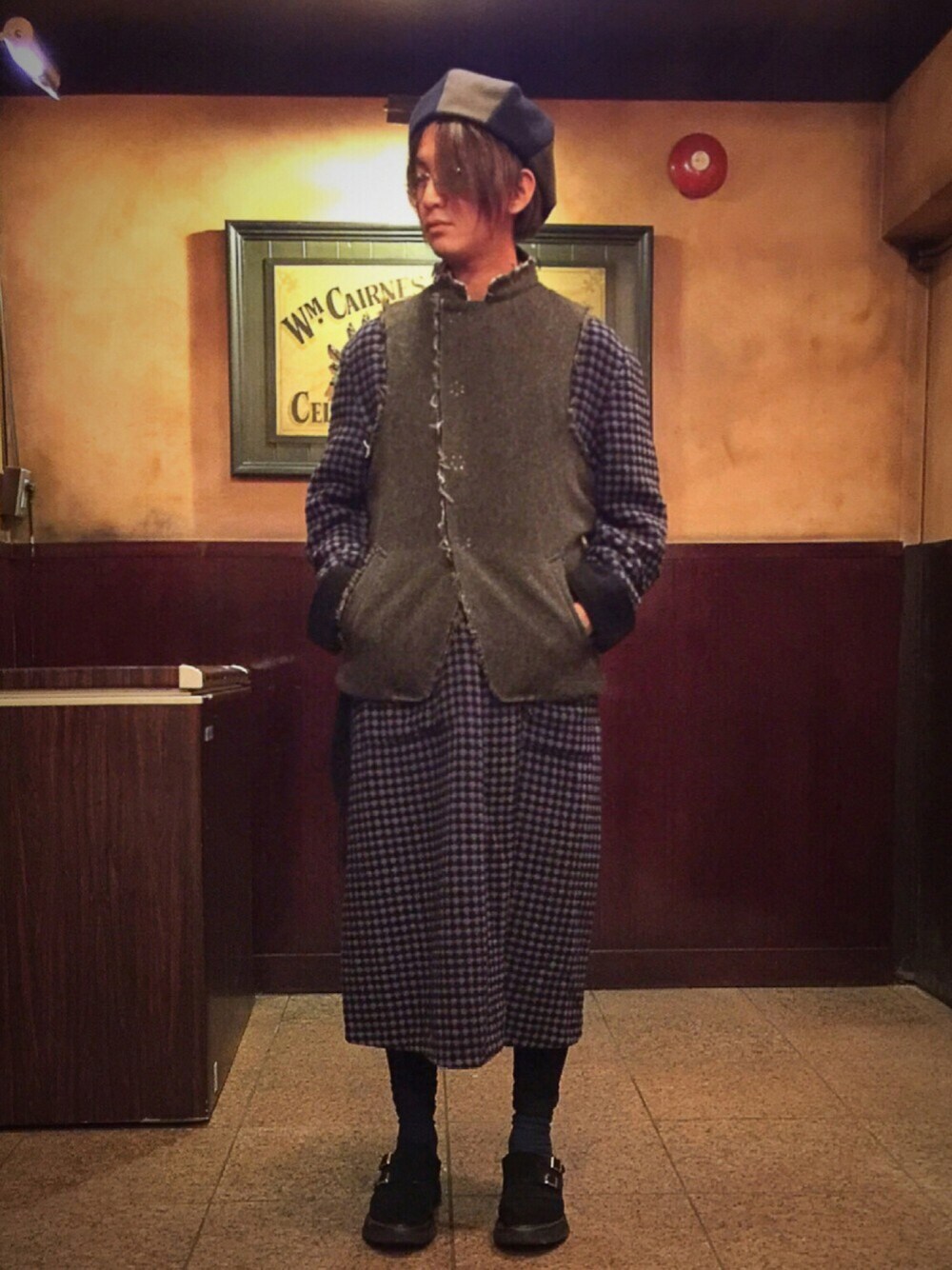 どうもー! プチプラのkskです💕 転職することが決まって以来私服の買い物ができずフラストレーションが溜まっております😂 ビジネスカジュアルってなんやねーん! 誰か教えて下さ〜い😭 今日はガウンを使ったコーデを組みました💦 マロさんには646をガウンと合わせて欲しいと言われましたが履いてません😋 貰い物のガウンにウールのベストを重ねてちょっとワンピースっぽくも見える感じにしてみました😶 量産型女子寄せ?😂 下はUNIQLOのヒートテックタイツ✨ 足元はガウンとベストの雰囲気に合わせてダブルモンクをチョイス😶 キャスケットはグレーとネイビーを拾ってます🙄☝️ ちなみに古着だとガウンの紐が欠損してる事が多いのですが、僕はUNIQLOのストールで代用してます😍 インナーもヒートテックなのでだいぶプチプラかと♥️ ヒムカシのソックスはゴムを不使用なのにはき心地抜群でかつリバーシブルの優秀な子です💕💕 ニャンペたん誕生日おめでとうございます(^_^)