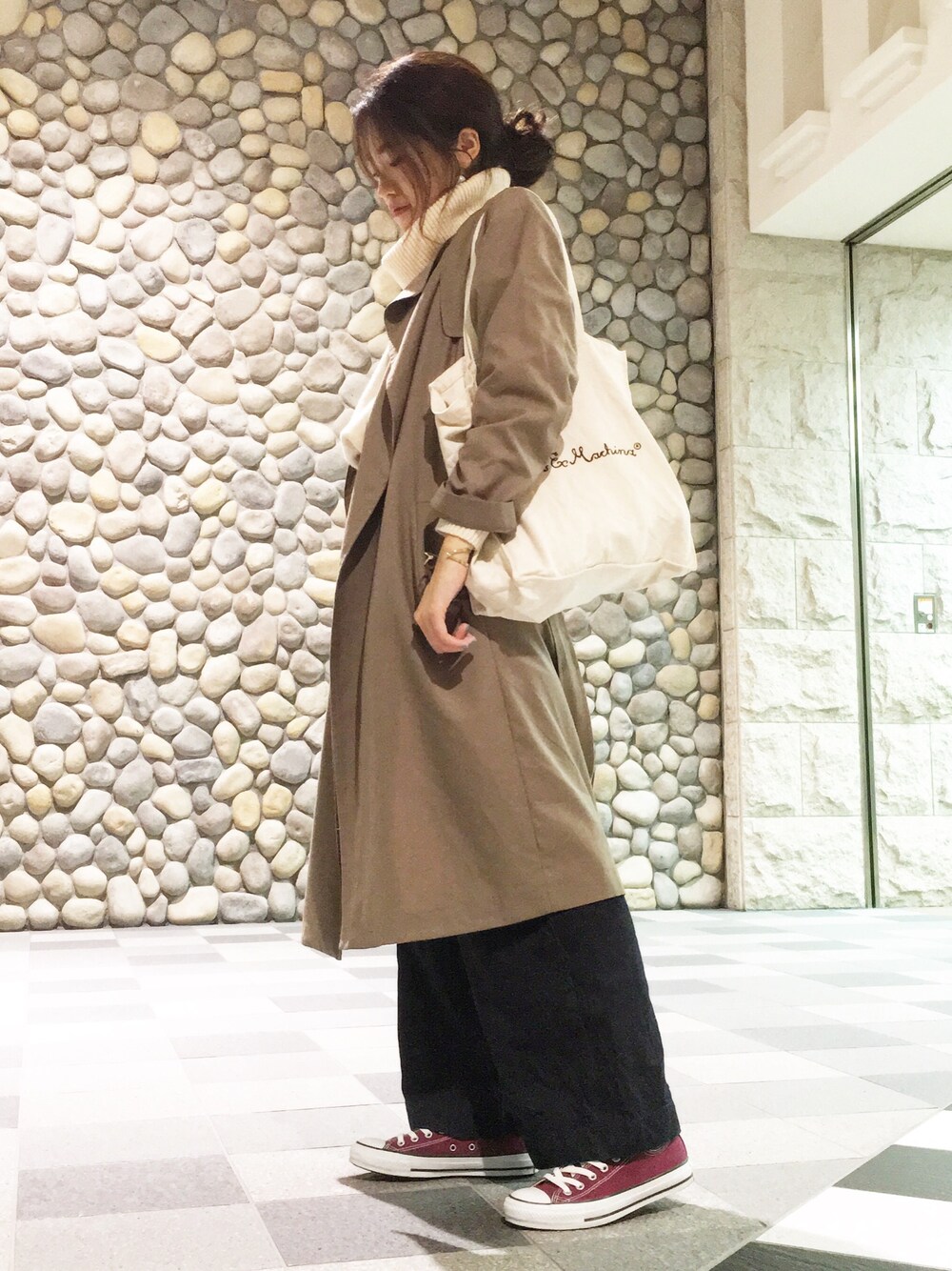 ロングトレンチにワイドパンツの ずるずるスタイルやった日💁💁💁 全然見えてないですが😂 ニットのざっくりしたタートル部分がお気に入りです❣️ トートバッグはデウスのものです☺︎