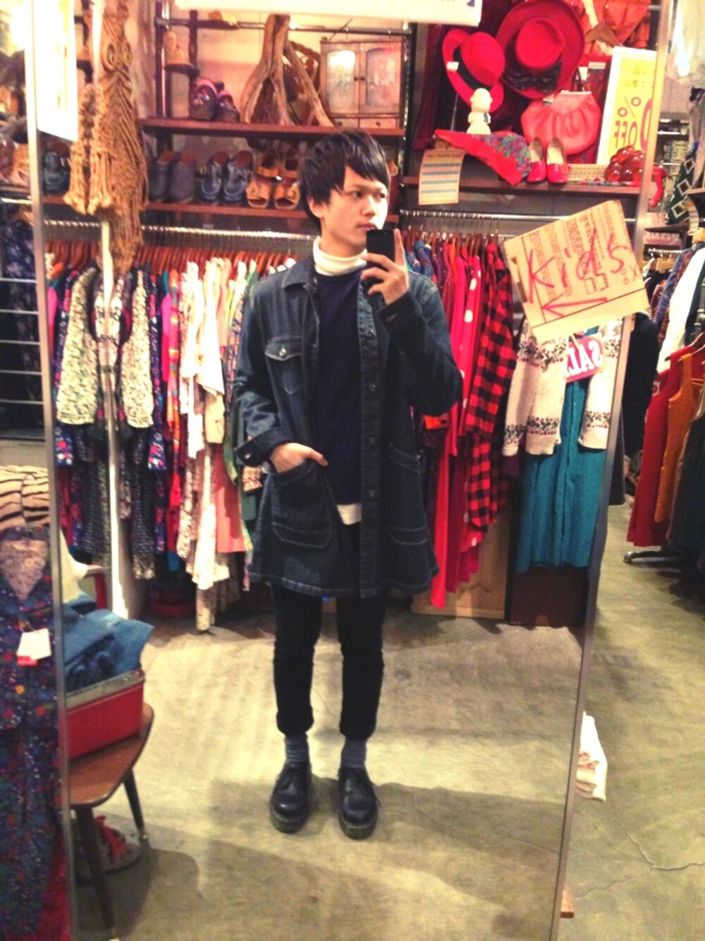 ども! 古着屋さん来たので撮ってみました 同系色風で 少し暗めですね( ´ ▽ ` )ノ ショップコート/used ニット/COMME des GARÇONS スキニー/UNIQLO