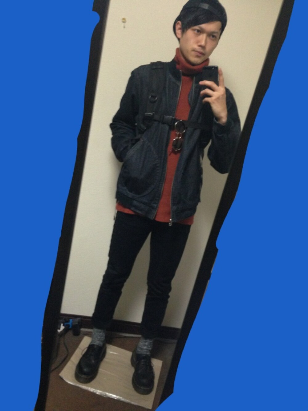 ストリートな感じで( ´ ▽ ` )ノ SABREのサングラス ここにひっかけるのが限界です(笑) MA-1/used タートルネック/不明 パンツ/UNIQLO シューズ/Dr.martens サングラス(丸)/SABRE
