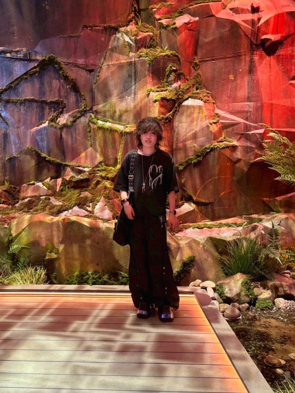 全身ブラックでまとめててAラインを意識しつつ下半身にパワーがでるようにスタイリングしてます!