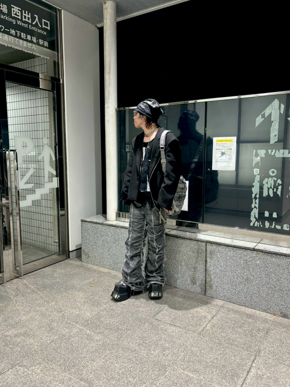 サーマルとパンツの印象に合わせてビーニーとリムレスをつけて体温調節に合わせてテーラードを羽織っております。