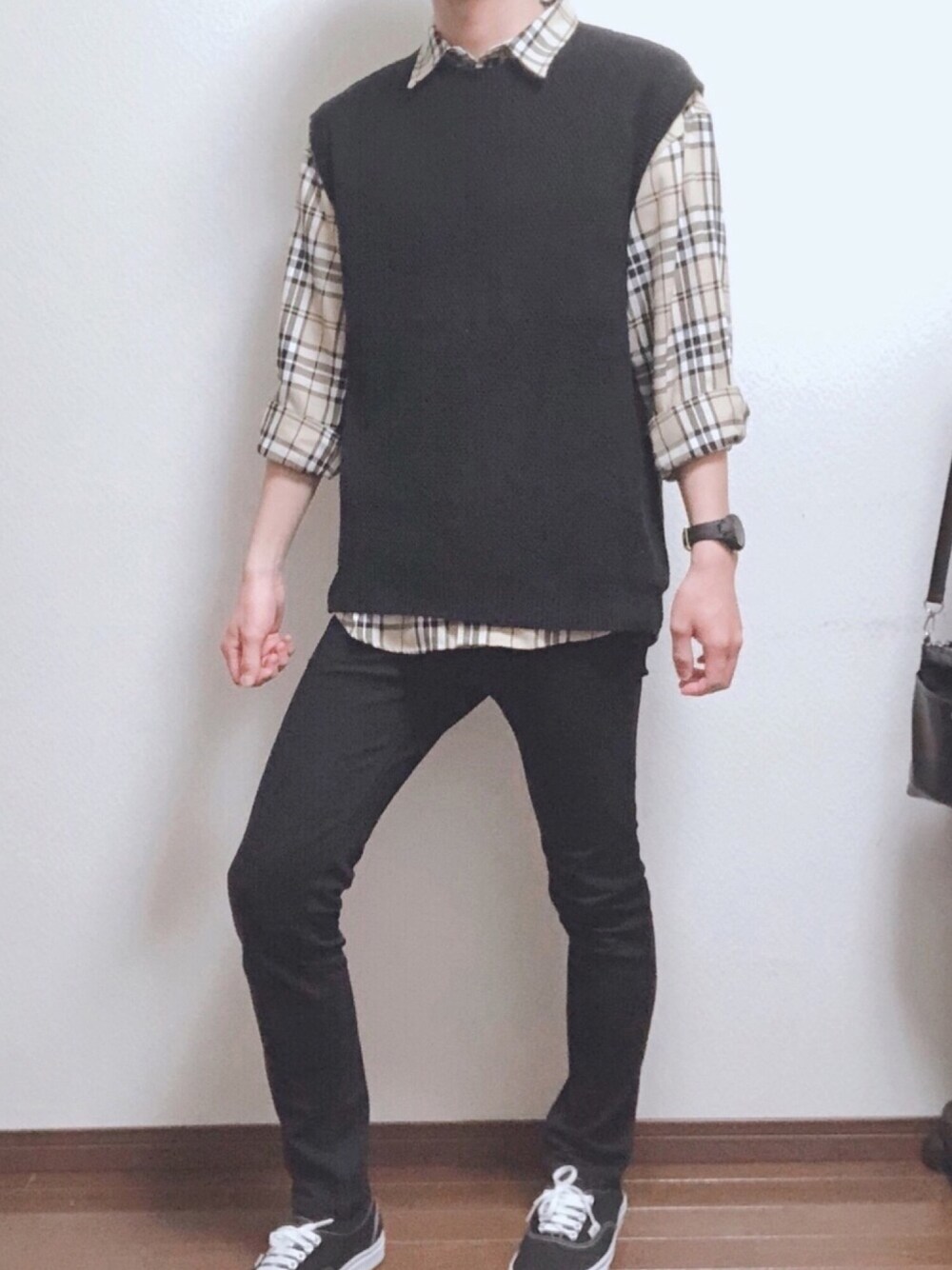 投稿見てくださりありがとうございます。 今回は初投稿となっております🙏 チェックシャツとベストの相性が良くてチェックの部分をベストが隠してくれるので落ち着いた感じに抑えることができます。 最近お気に入りのコーデです