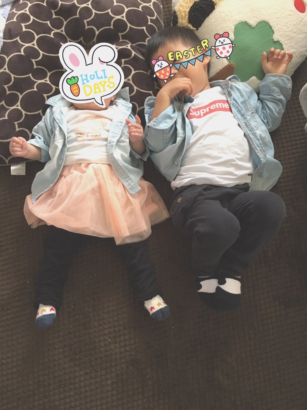 見てくださり、ありがとうごさいます! 今日は、暑い!ので、こども2人半袖シャツです! デニム×白シャツ×ブラックパンツの リンクコーデ🌿
