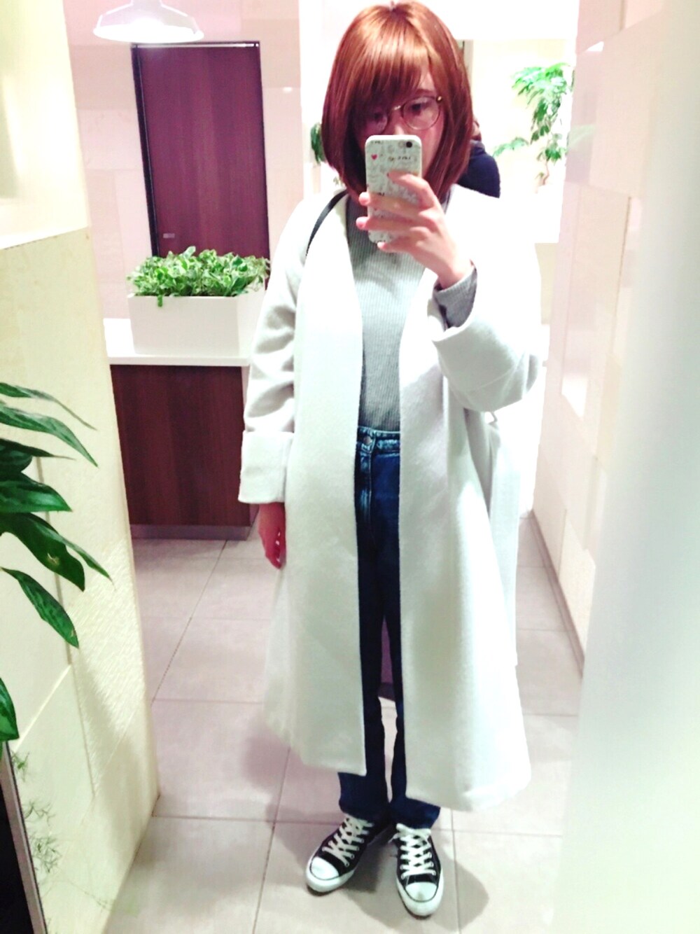ミラのライトグレーのコート✨ シンプルで合わせやすいから お気に入り😍
