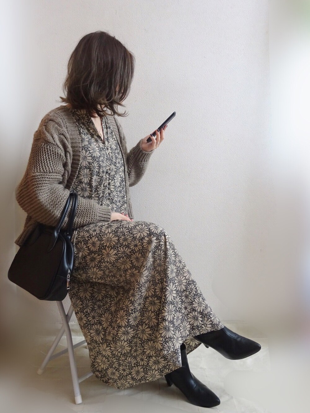 見ていただきありがとうございます🥰 フォルダイン、いいね、お気に入りフォロー本当にありがとうございます😭💕 TEMS URBANRESEARCH 花柄ラグランワンピース ニットカーデ SonnyLabel 着回しです🙇♀️
